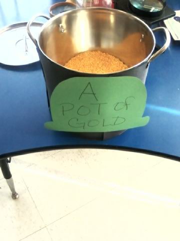Colored Rice Explorations. This is a Pot of Gold Activity planned back in 2011. The teacher dyed the rice yellow, by soaking the rice in yellow food coloring and by adding a small amount of alcohol. Then she let the rice air dry over night. The kids love to feel, scoop, sift, explore the color and measure the rice.
