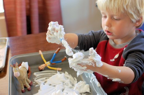 Exploring Shaving Cream “It’s messy, yet it is fun! Kids can make shapes or even practice writing their name in the shaving cream.