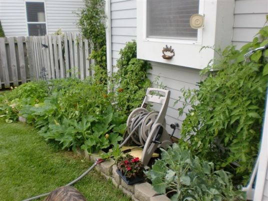 One of our garden areas – about 14′ x 4′ We usually plant tomatoes, cucumbers, Brussels sprouts, broccoli, cilantro jalapeno, green peppers, and our little herb garden at the far end with parsley, chives, basil, mint, thyme, oregano and sage. The kids like to go and rub the leaves and then smell their fingers!
